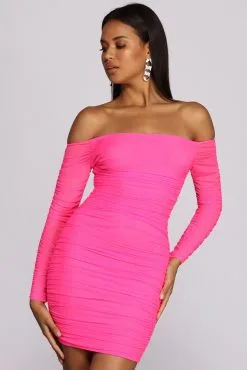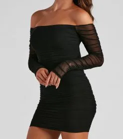 They’re def going to miss you when you leave in this hot mesh mini dress! It features a trendy, off-the-shoulder neckline, sheer long sleeves, ruching detail, and a form-hugging fit. Complete the look in statement