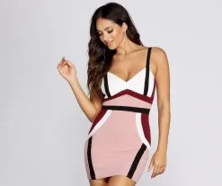 Figure flattering in color-blocked panels, this modernist mini immediately draws the eye! The on-trend mini tank dress features a sleeveless, v-neck, tank straps, and a curve-hugging silhouette perfect for flaunting your bombshell figure! Complete the look in sassy