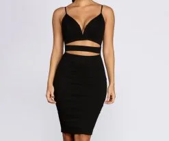 Make an immediate impression in this fab, curve-flattering mini! (Think future LBD hall-of-famer.) Dress features spaghetti straps, a sweetheart bodice with back zip, seamed bust with wire V detail at chest, a banded waist cutout, and a slim-line pencil skirt. Dress is made from a woven nylon and viscose blend with moderate stretch.