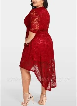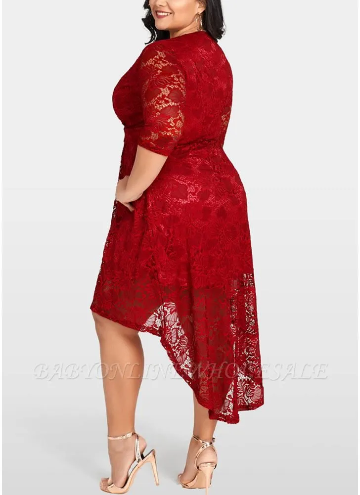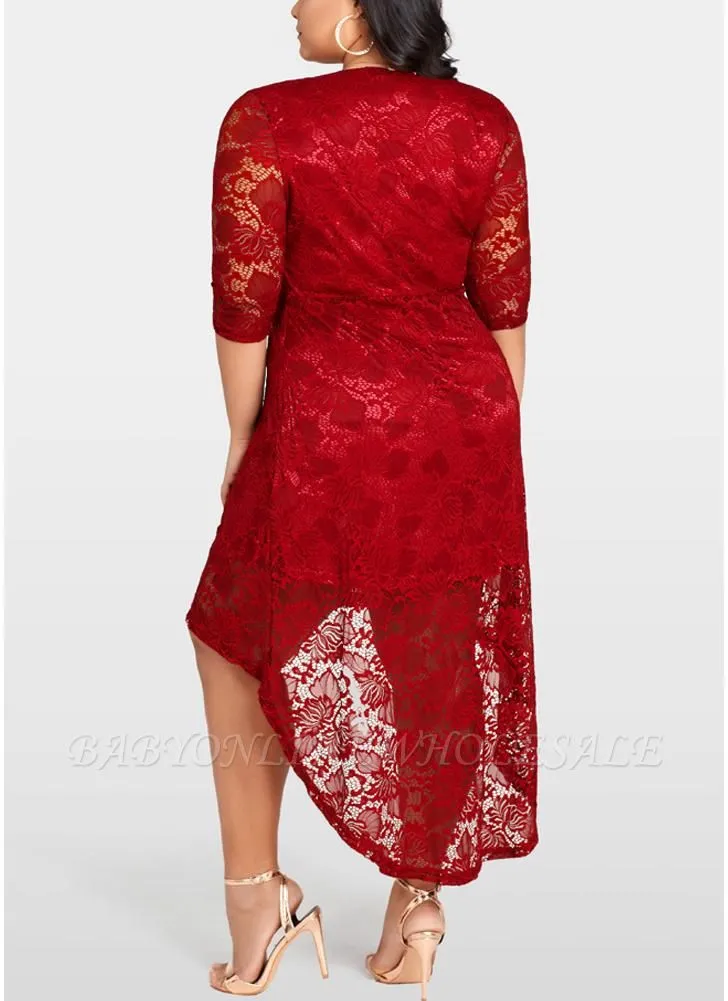 Women Plus Size Lace Dress Cross Front High-Low Hem Party Midi Dresses from Babyonlinewholesale. Best affordable Plus Dresses online store, cheap discounts are waiting for you.