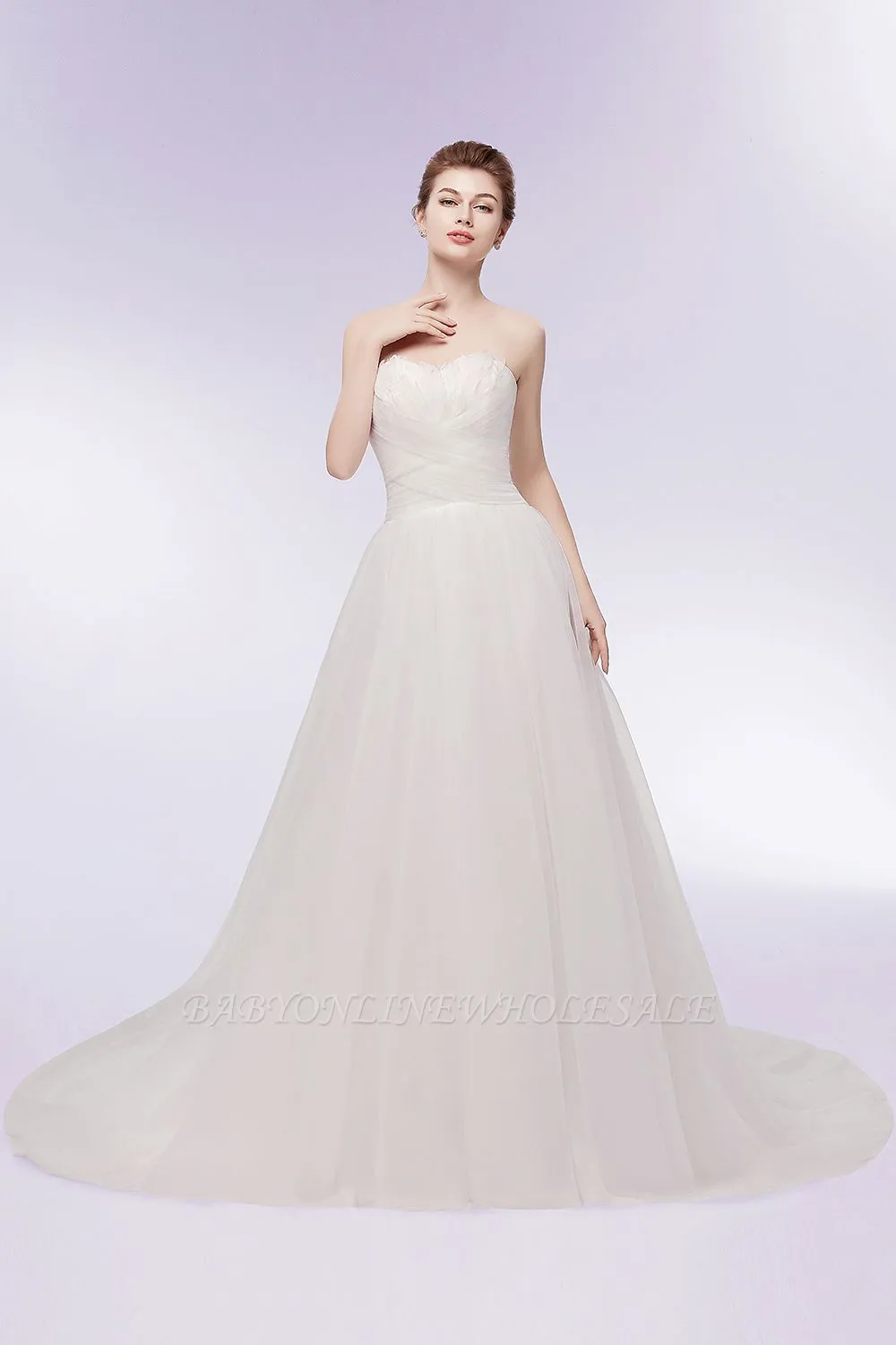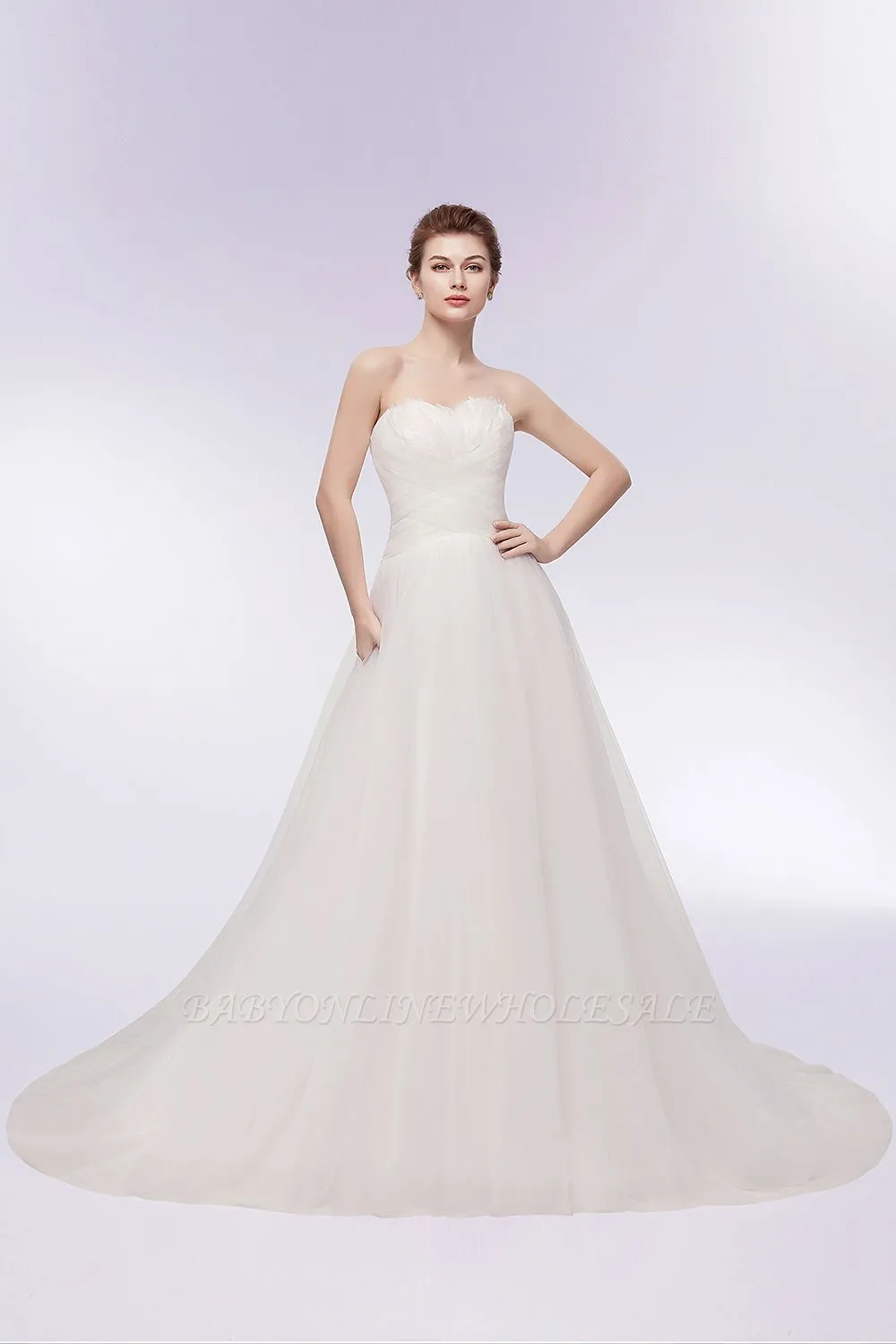 Babyonlinewholesale offers XENIA | A-line Sweetheart Strapless Tulle Wedding Dresses with Feathers at a cheap price from White,Ivory, Tulle to A-line Floor-length hem. Stunning yet affordable Sleeveless .