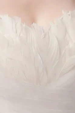 | product name | XENIA, A-line Sweetheart Strapless Tulle Wedding Dresses with Feathers |