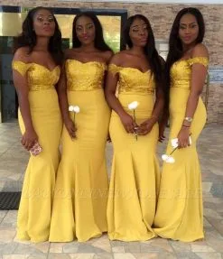 Yellow Off-the-shoulder Mermaid Sequined Mermaid Bridesmaid Dress